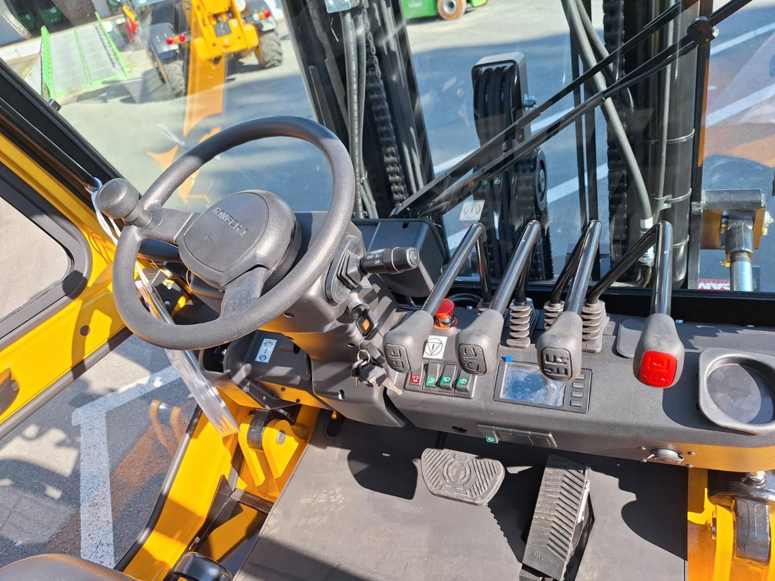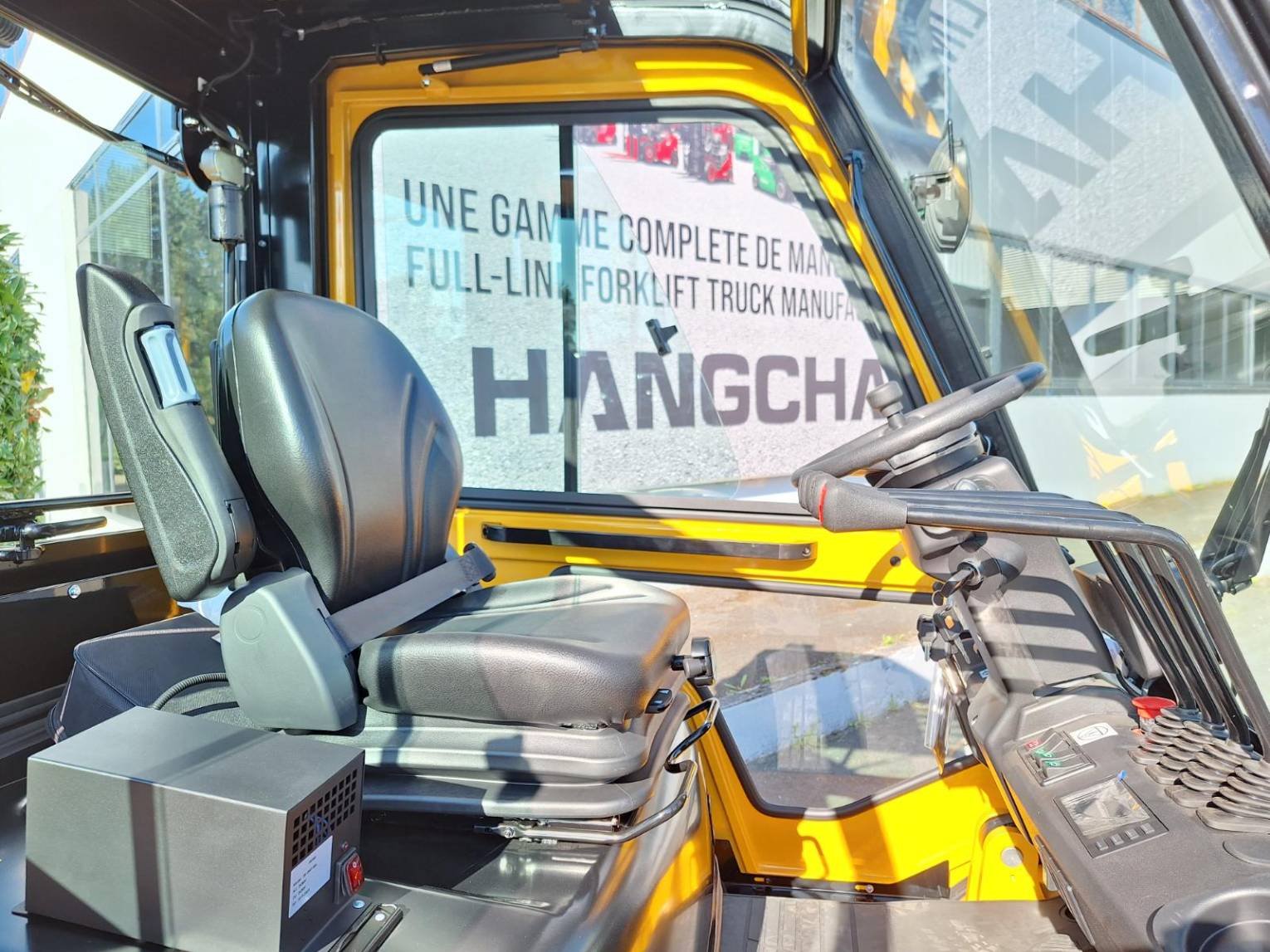 Details XE50i à 600mm tablier classe 4 ** TDL Positionneur de fourches CAM Chauffage pour cabine Siège SC29 avec microswitch et accoudoir Blue spot Ar Contrôle de présence Prise USB Rétro panoramique Feu de travail arrière Batterie Lithium 80V/ 560Ah garantie 5 ans ou 10.000hrs Chargeur Lithium intégré