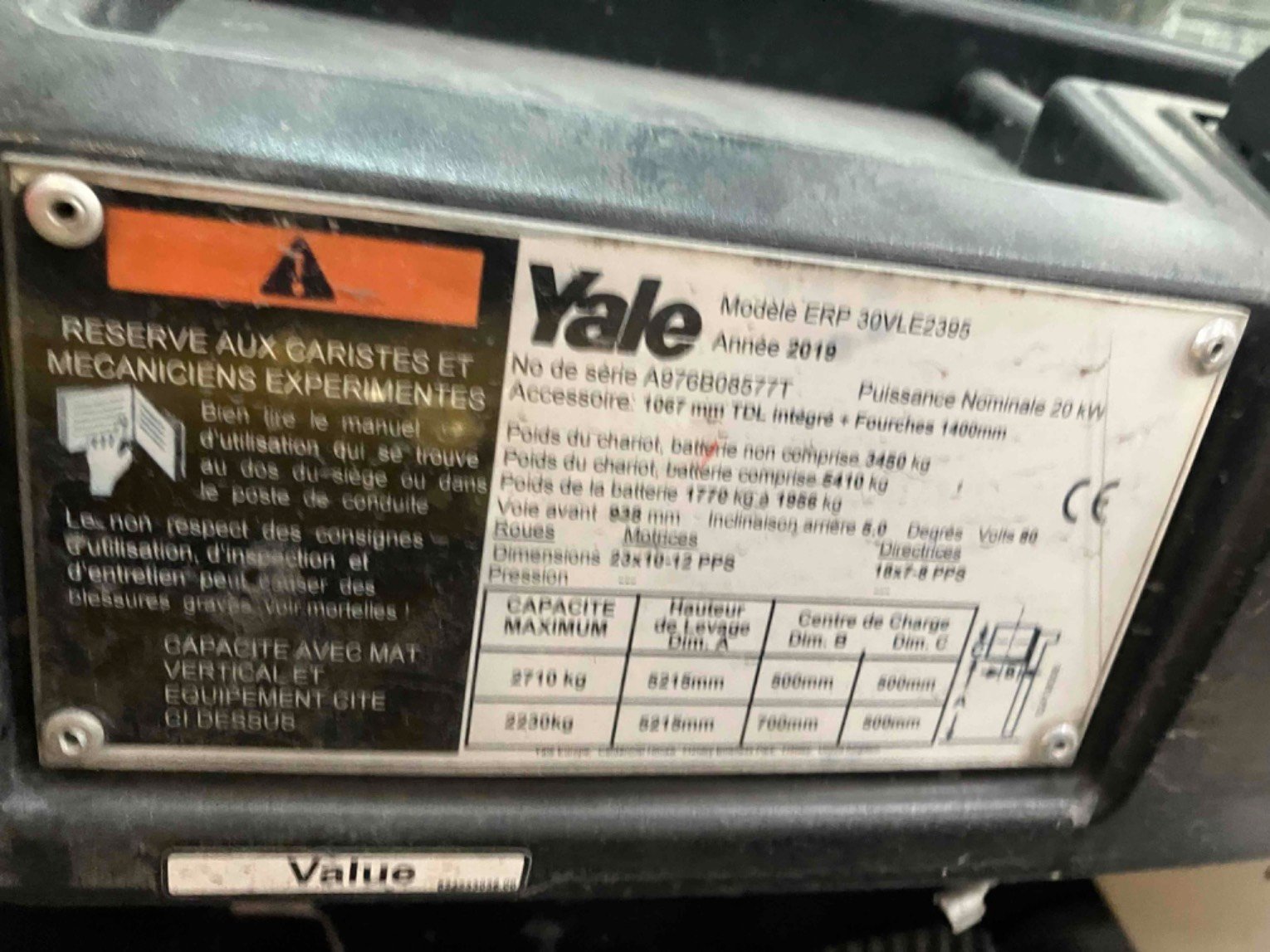 Capacité : : 3000Kg